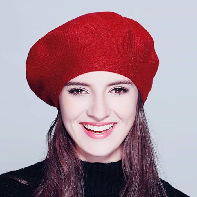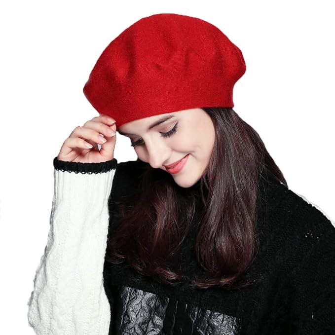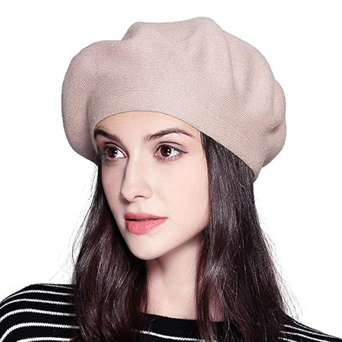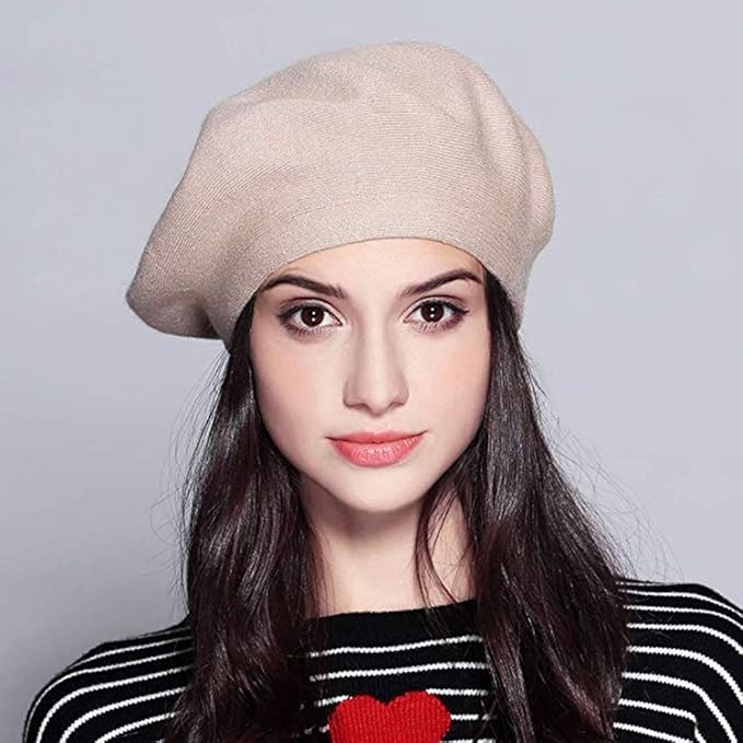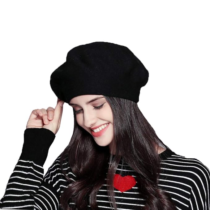 Wool Beret for Women, Classic French Cashmere Beret Hat Knitted Beanie Cap for Spring Autumn Winter