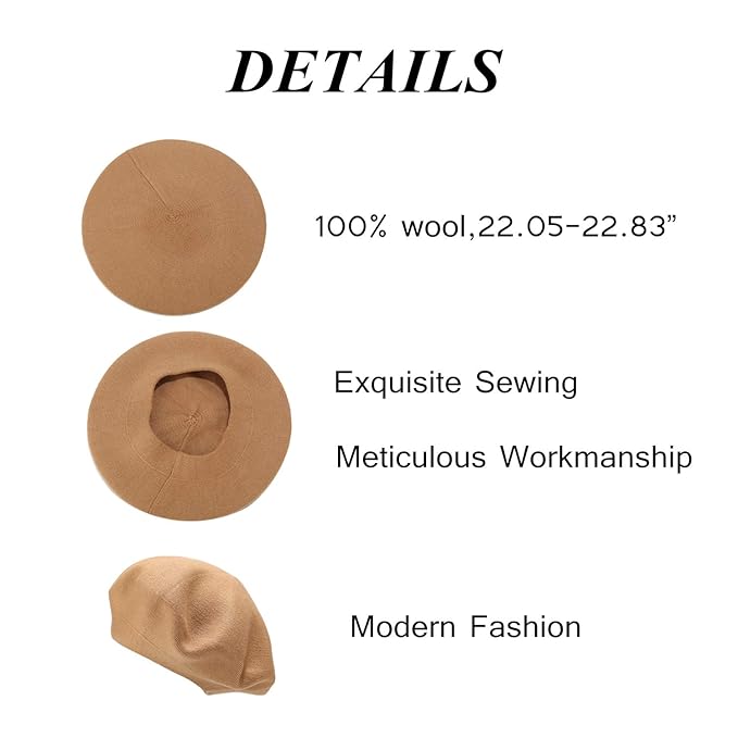 This hat is designed as a French Classic Beret ,not only has the modern fashion sense ,but also has Elegant temperament.And this is a Knitted Cap, it can effectively blocks the cold wind and give you extra warm.The material include Wool,high quality.